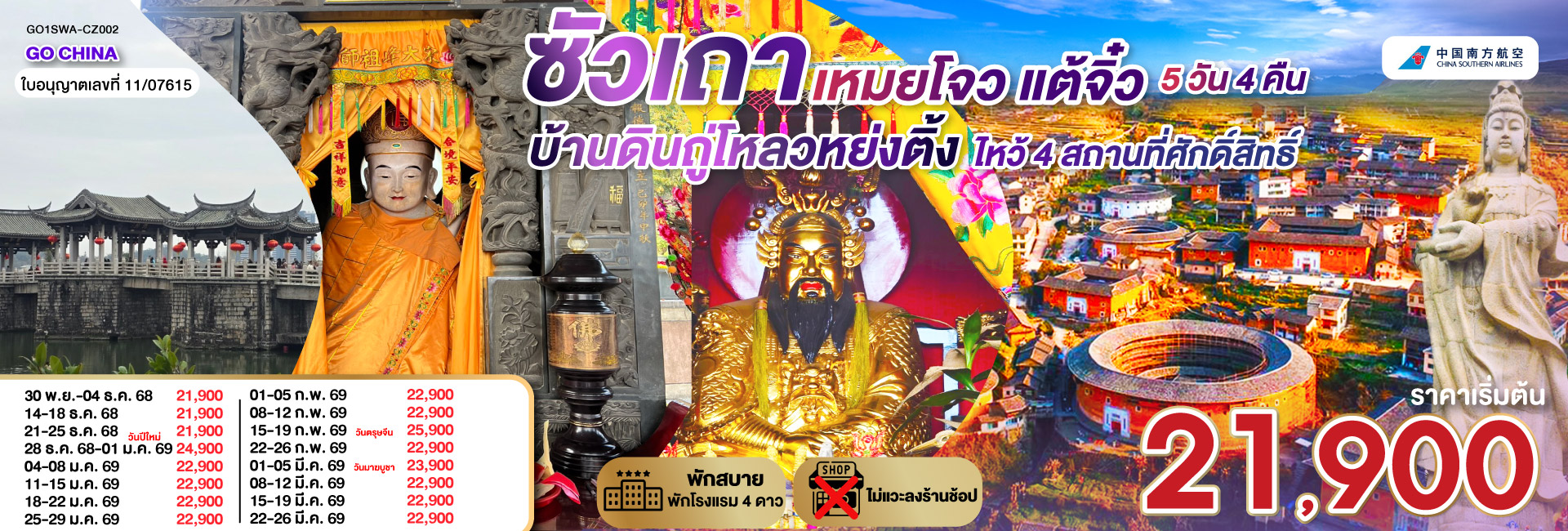 บินตรงซีอาน ย้อนเวลาสู่ฉางอัน เจิ้งโจว ลั่วหยาง หยุนไถซาน 6 วัน 5 คืน โดยสายการบิน ไทย ไลออนแอร์ (SL)