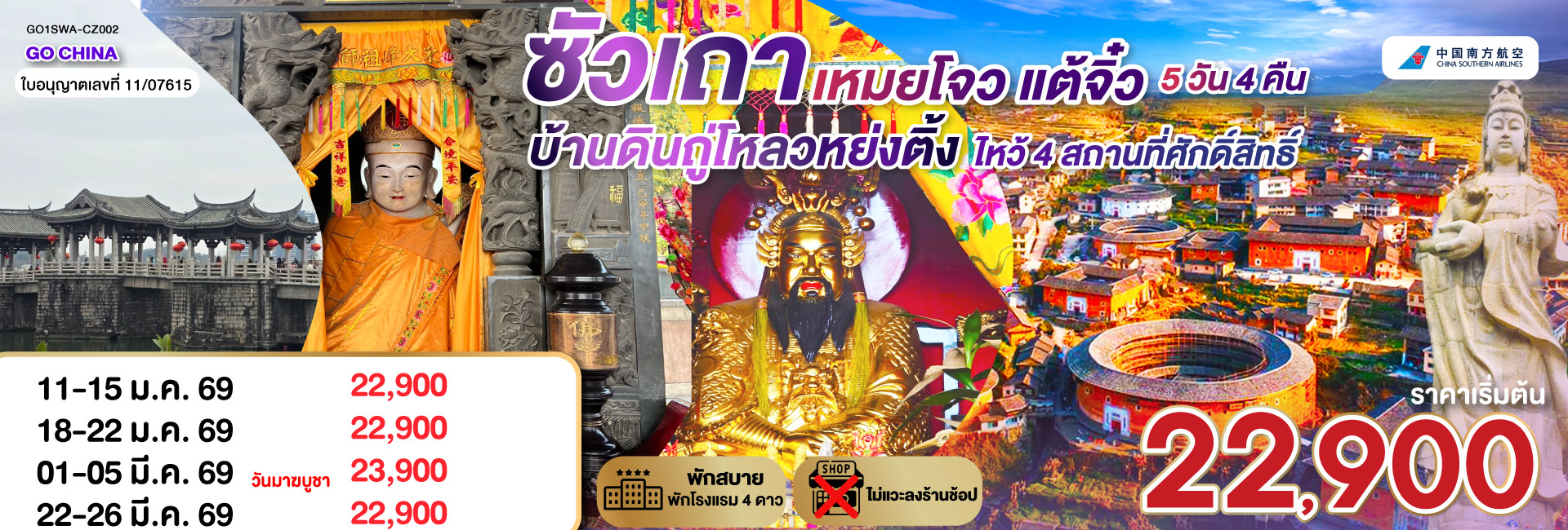 บินตรงหนานชาง หลูซาน ขุนเขาในม่านหมอก หุบเขาเทวดา หมู่บ้านหวงหลิง เขาหลิงซาน 6 วัน 5 คืน โดยสายการบิน ไทย ไลออนแอร์ (SL)