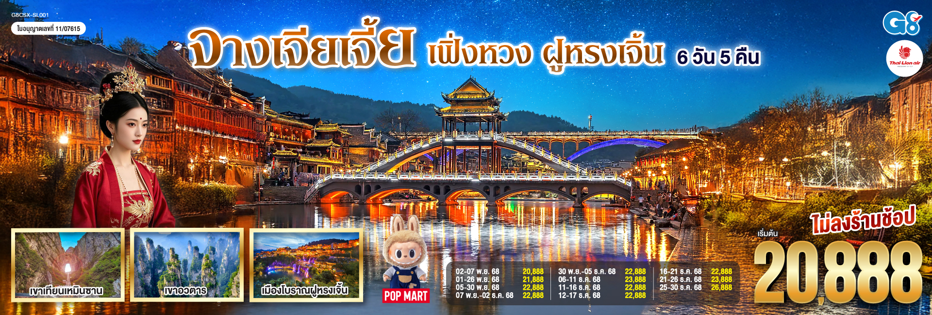 เที่ยว 3 เมือง 3 อุทยาน เฉิงตู ฉงชิ่ง อู่หลง อุทยานสี่ดรุณี อุทยานหลุมบ่อฟ้า อุทยานเขานางฟ้า 6 วัน 4 คืน **ไม่เข้าร้านช้อป** โดยสายการบิน Air Asia (FD)