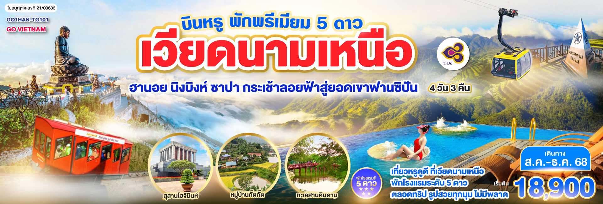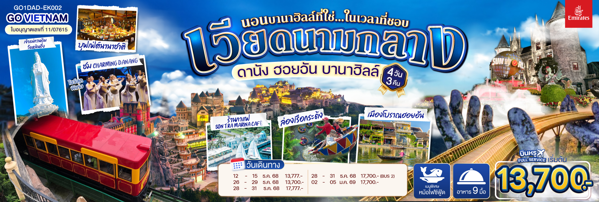เวียดนามกลาง เที่ยวสบาย บินบ่าย - กลับเย็น บาน่าฮิลล์ฟีลขึ้นสวรรค์ มหัศจรรย์เมืองมรดกโลกฮอยอัน 4วัน 3คืน โดยสายการบิน Thai VietJet Air (VZ)