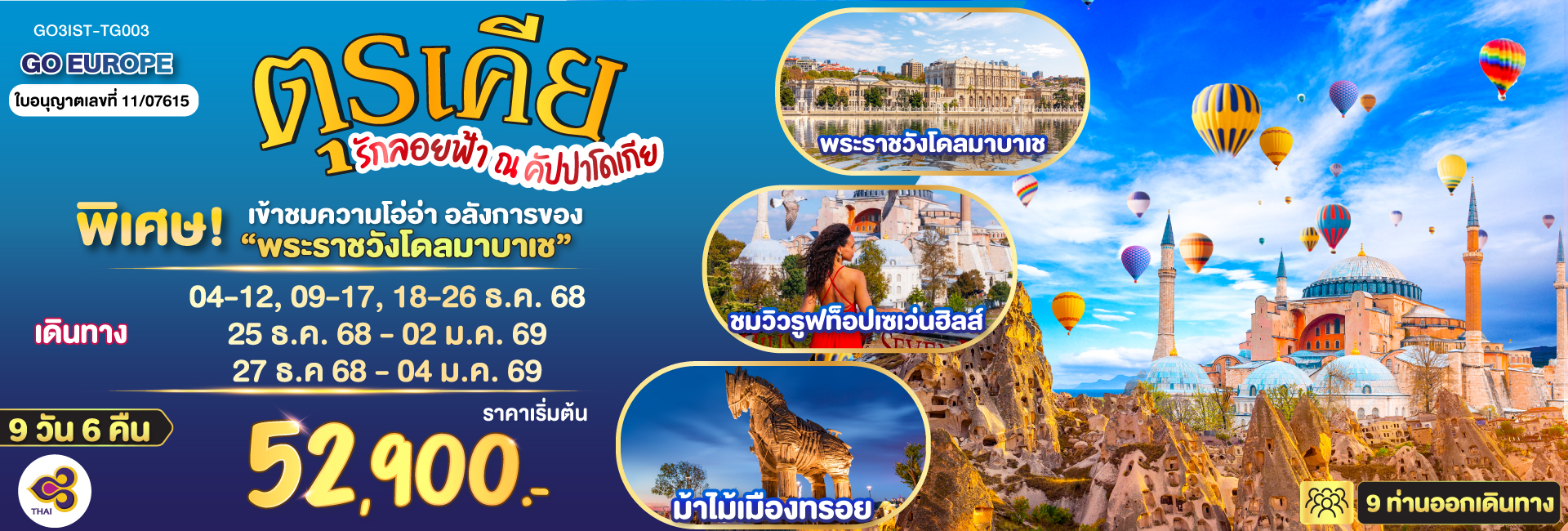 บอลลูนสายลับ กับ เซเว่นฮิลล์สุดสวย ตุรเคีย บินตรง เที่ยวจัดเต็ม 9 วัน 7 คืน โดยสายการบินเตอร์กิช TURKISH (TK)