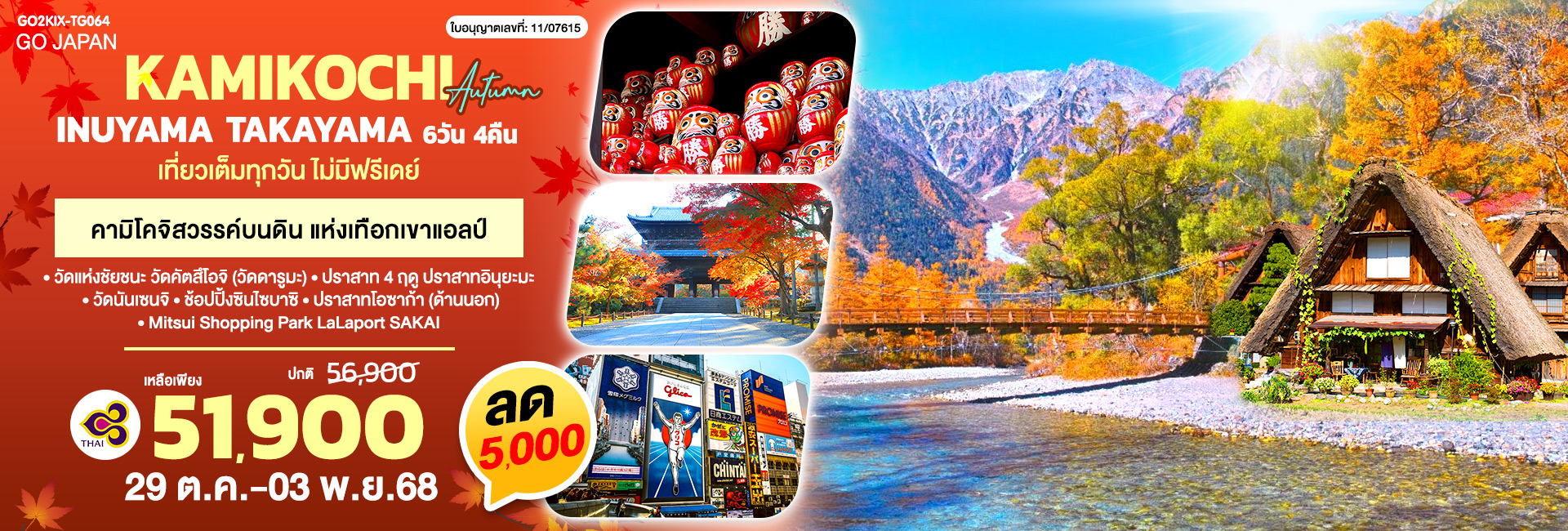 SHIRAKAWAGO KAMIKOCHI OSAKA 5D 3N โดยสายการบินไทยแอร์เอเชีย เอ็กซ์ [XJ]