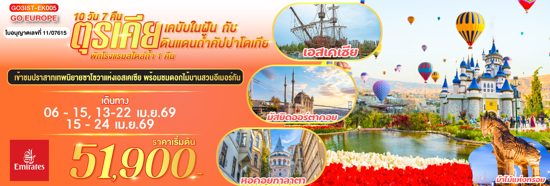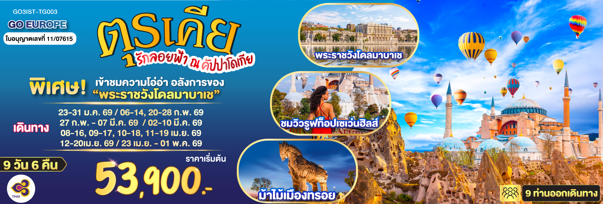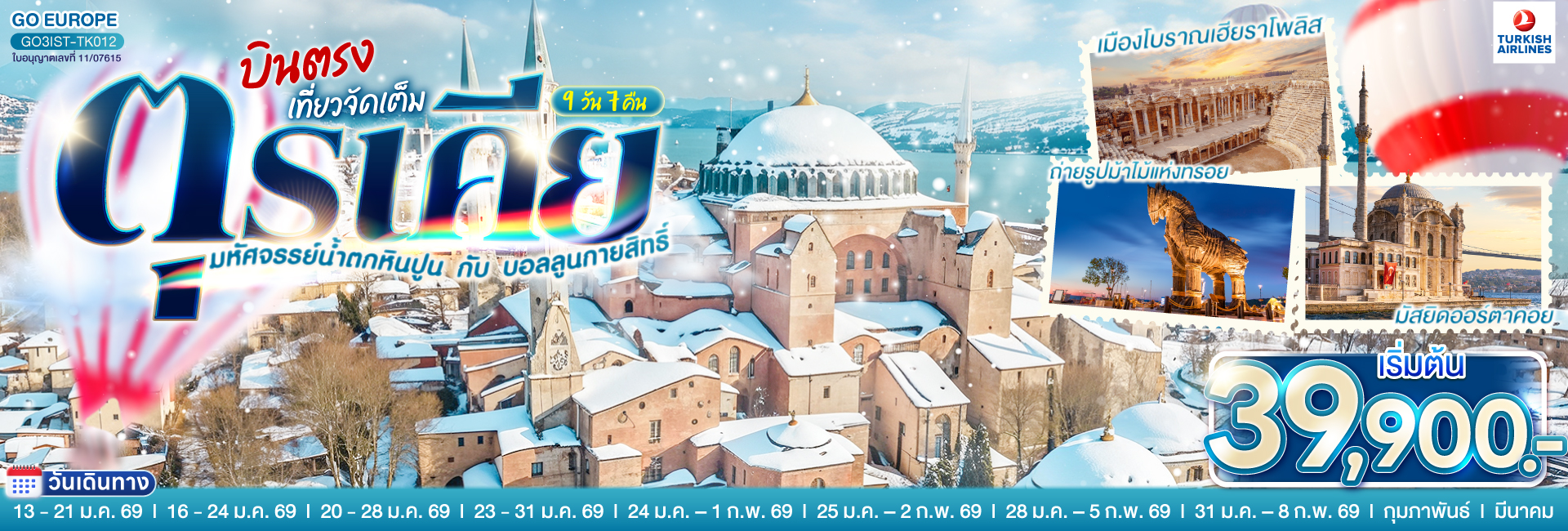ตุรเคีย มหัศจรรย์น้ำตกหินปูน กับบอลลูนกายสิทธิ์ บินตรง เที่ยวจัดเต็ม 9 วัน 7 คืน โดยสายการบินเตอร์กิช TURKISH (TK)