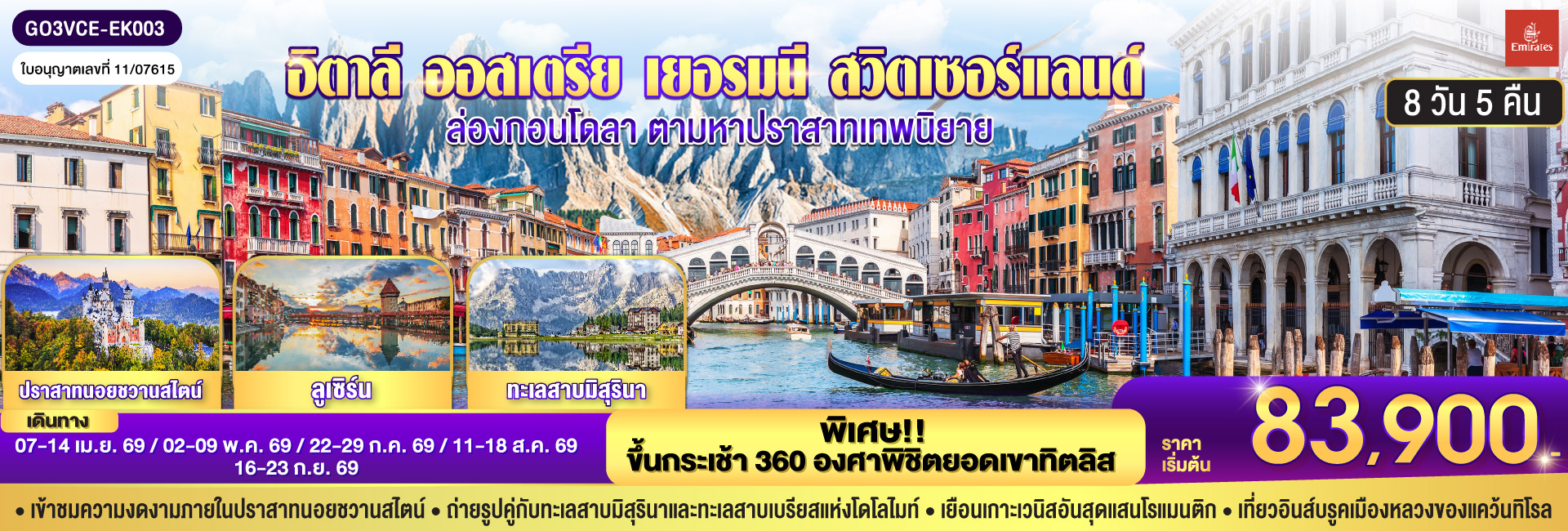 COMO MOMENT จะกี่คอนเท้นท์ ก็วิวหลักล้าน อิตาลี - สวิตเซอร์แลนด์ 7วัน 4 คืน โดยสายการบิน Emirates (EK)