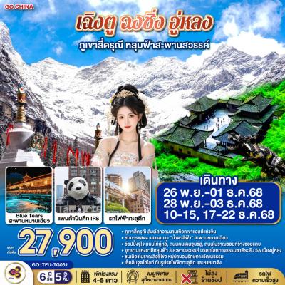 เฉิงตู...ดูหมีแพนด้า เที่ยวลั๊ลล๊า 2 อุทยาน อุทยานปี้เผิงโกว อุทยานสี่ดรุณี Times Outlets Chengdu *ไม่ลงร้านช้อป* 5วัน 4คืน โดยสายการบิน Thai Lion Air (SL)