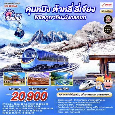 บินตรง..เชียงใหม่ สัมผัส..เสน่ห์..เมืองจีน คุนหมิง ต้าหลี่ ลี่เจียง แชงกรีล่า (นั่งรถไฟความเร็วสูง) 5 วัน 4 คืน ** เที่ยวเต็มอิ่ม..ไม่ลงร้านช้อป** โดยสายการบิน China Eastern Airlines (MU)