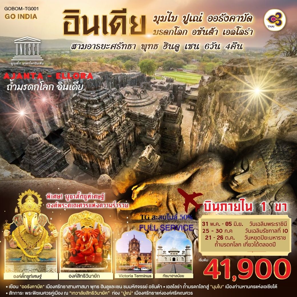 GO1BOM-TG001 | INDIA มุมไบ ปูเณ่ ออรังคาบัด ถ้ำมรดกโลก อชันต้า เอลโลร่า สามอารยะศรัทธา พุทธ ฮินดู เชน 6วัน 4คืน โดยสายการบิน Thai Airways (TG) |