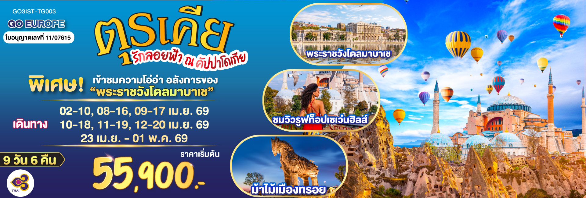 ตุรเคีย มหัศจรรย์น้ำตกหินปูน กับบอลลูนกายสิทธิ์ บินตรง เที่ยวจัดเต็ม 9 วัน 7 คืน โดยสายการบินเตอร์กิช TURKISH (TK)