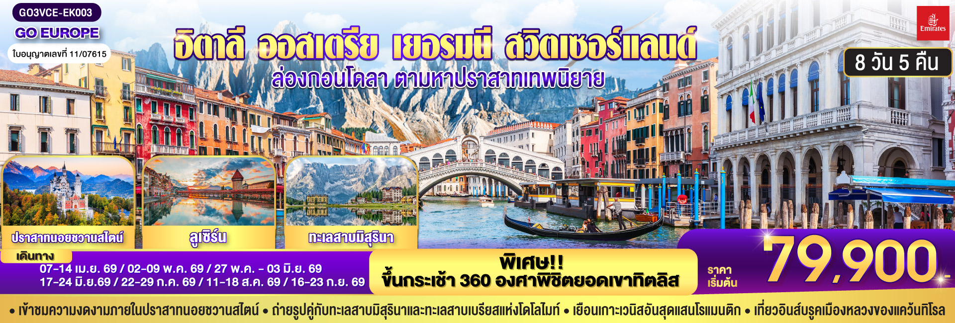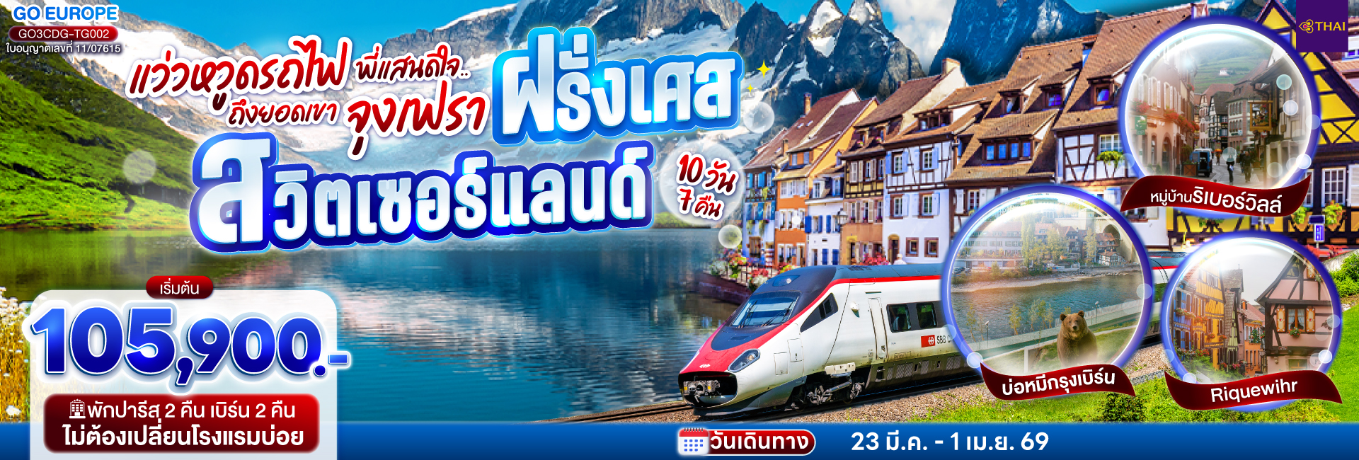 จุงเฟรา ว๊าวซ่า ฝรั่งเศส – สวิตเซอร์แลนด์ – อิตาลี 8 วัน 5 คืน โดยสายการบิน Emirates (EK)