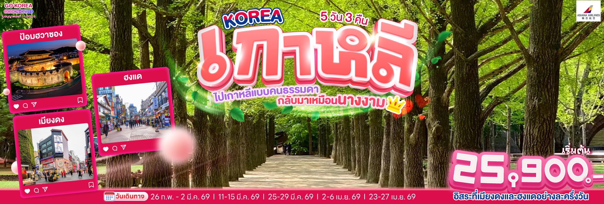 KOREA ไปเกาหลีแบบคนธรรมดา กลับมาเหมือนนางงาม 5 วัน 3 คืน โดยสายการบินเอเชียน่า (OZ)