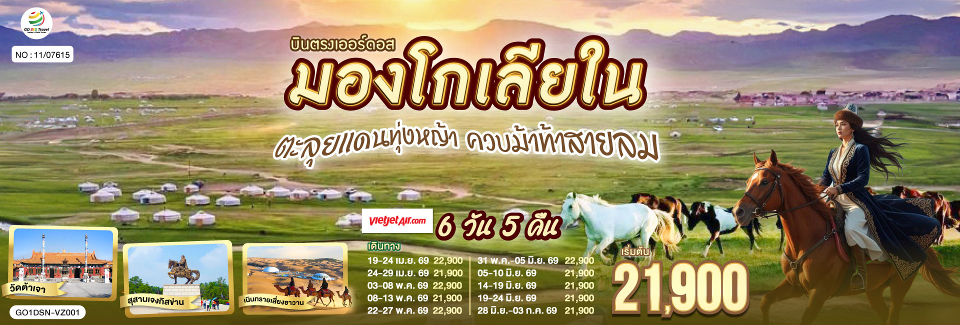 บินตรงเออร์ดอส มองโกเลียใน ตะลุยแดนทุ่งหญ้า ควบม้าท้าสายลม 6 วัน 5 คืน โดยสายการบิน ไทย เวียตเจ๊ต (VZ)