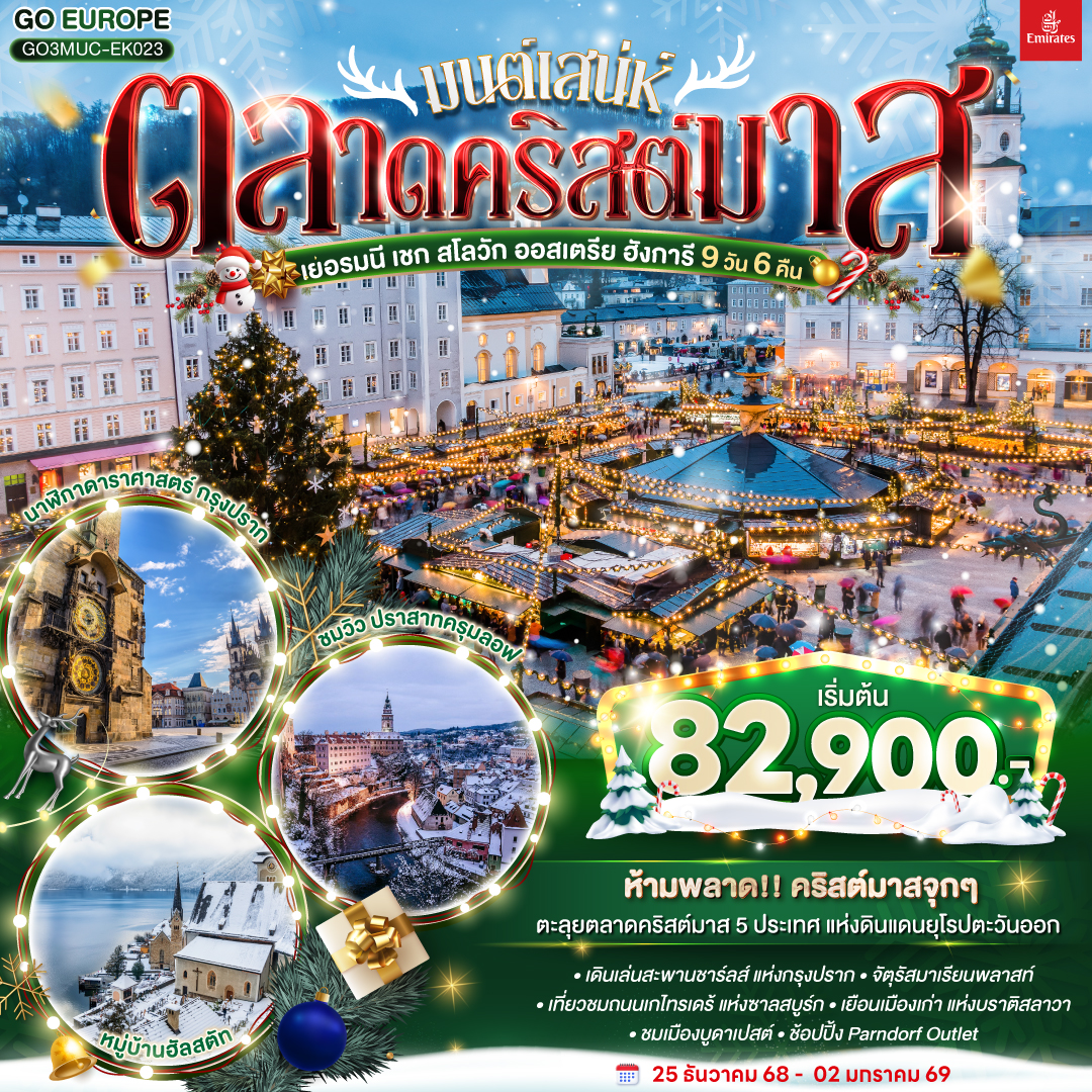 มนต์เสน่ห์ตลาดคริสต์มาส ยุโรปตะวันออก เยอรมนี เชก สโลวัก ออสเตรีย ฮังการี 9 วัน 6 คืน โดยสายการบิน EMIRATES (EK)